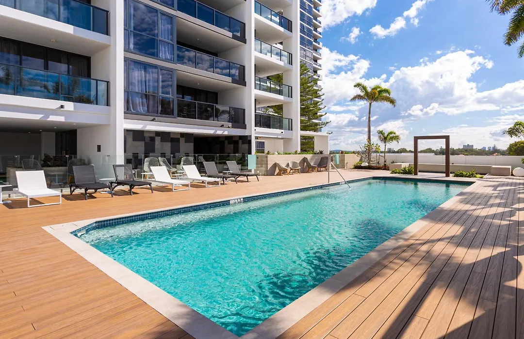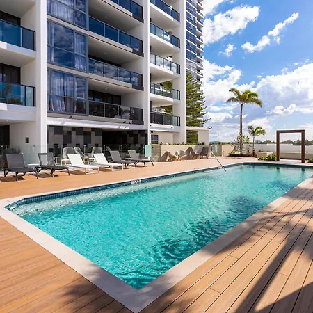 Serain Residences On Qube Gold Coast, situado a aproximadamente 600 metros de Broadbeach, incluye un balcón y una zona de comedor. Este apartamento de 92 m² cuenta con un jacuzzi y piscina exterior. Está situado a un corto paseo del Centro de Exposiciones y Convenciones de Gold Coast.